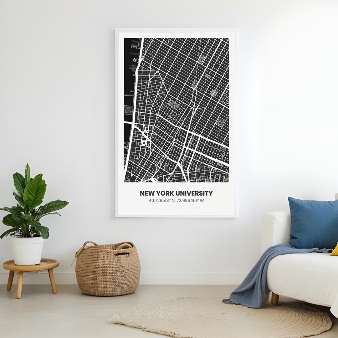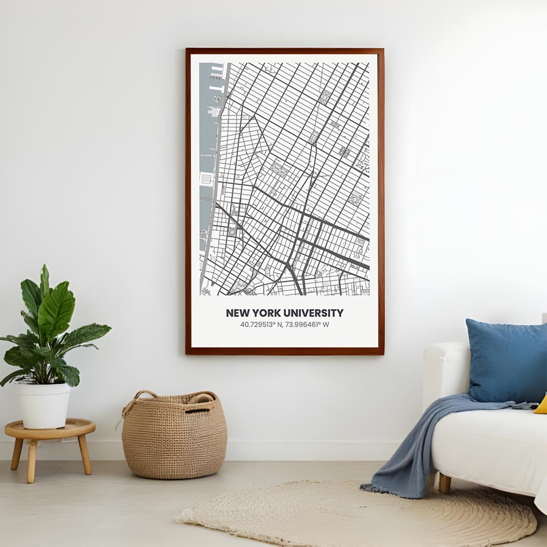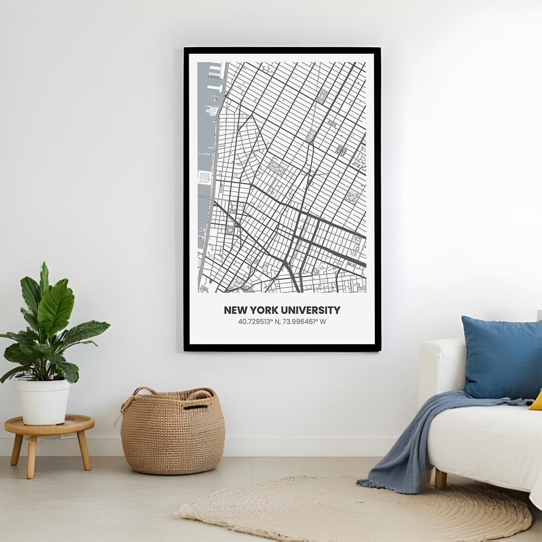 New York University Campus Map Frame – Minimalist 11×17 Wall Art