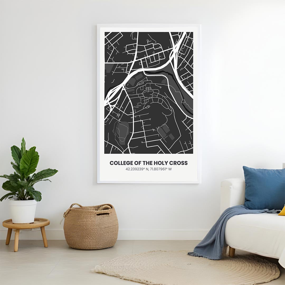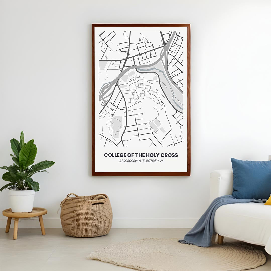 College of the Holy Cross Campus Map Frame – Minimalist 11×17 Wall Art